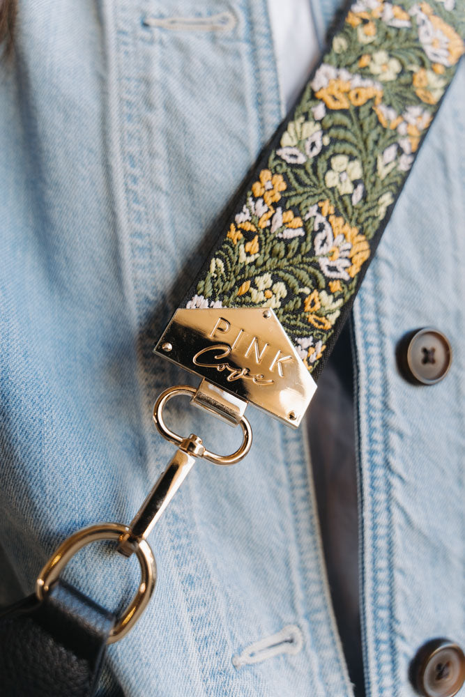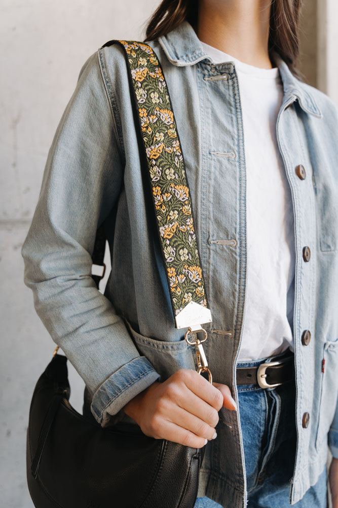 BAG STRAPS - GREEN/YELLOW FLORAL