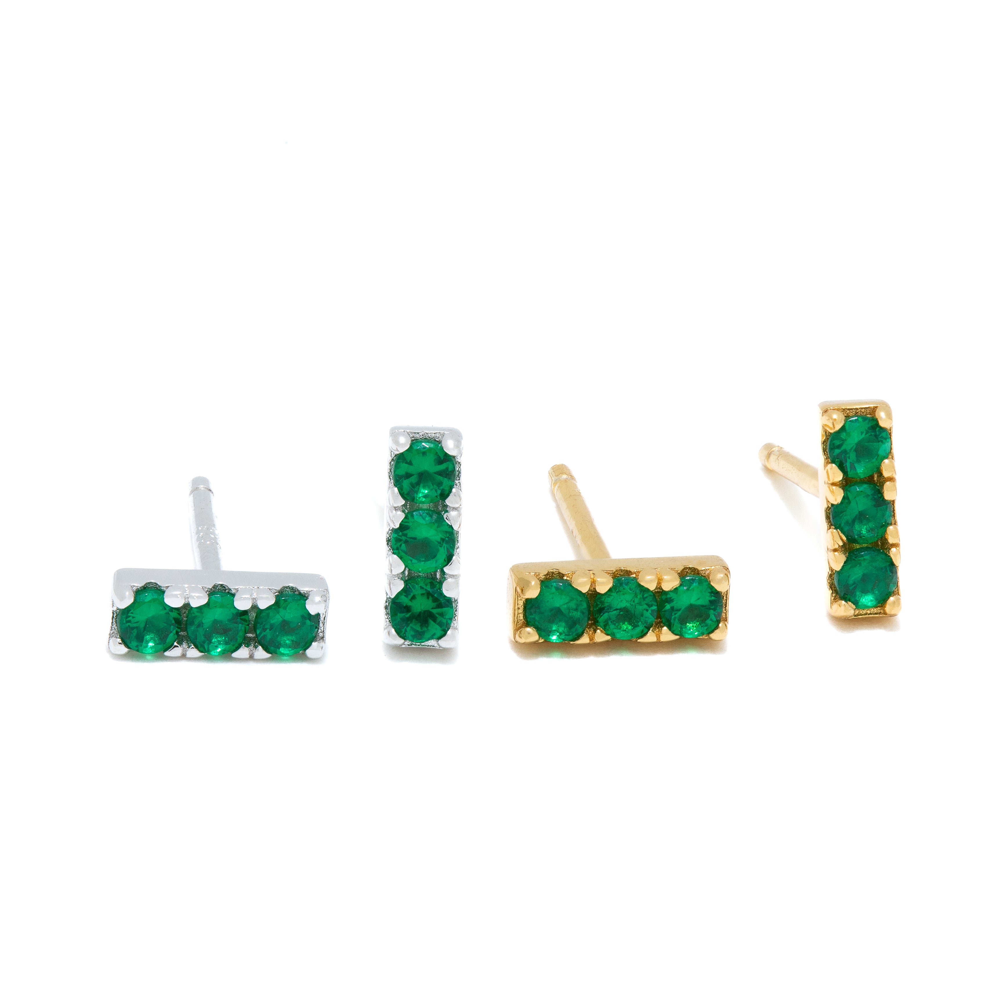 Introducing our stunning Vermeil Gold and Silver Trio Emerald Stud Earrings! This exquisite piece is the perfect combination of elegance and versatility. Crafted in high-quality 18k Vermeil Gold or Silver, these earrings are water proof, and sweat proof.